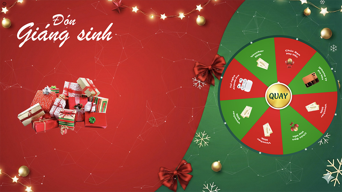 Bạn muốn tạo một vòng quay may mắn thật nổi bật để tri ân khách hàng trong mùa Giáng Sinh? Và giao diện vòng quay phải mang đúng “chất” Noel – xanh, đỏ, lung linh? Dưới đây là hướng dẫn chi tiết từng bước giúp bạn tạo một vòng quay theo đúng phong cách lễ hội ngay trên vongquaymayman.co.